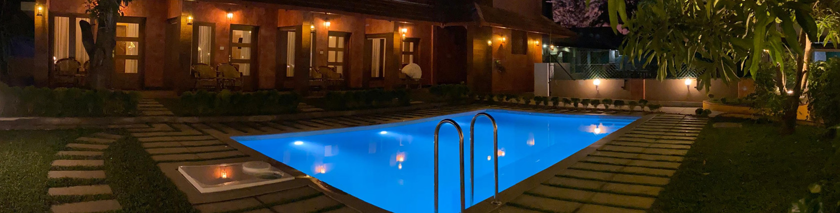 Our rooms include a Pool-Facing Room with convenient pool access and a Deluxe Double Room offering peaceful privacy. Both feature air-conditioning, WiFi, private bathrooms, and access to shared spaces like the swimming pool, parking, luggage support, and power backup.