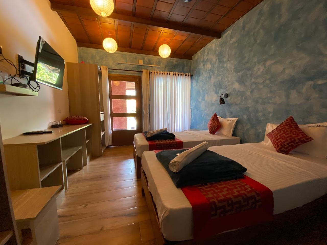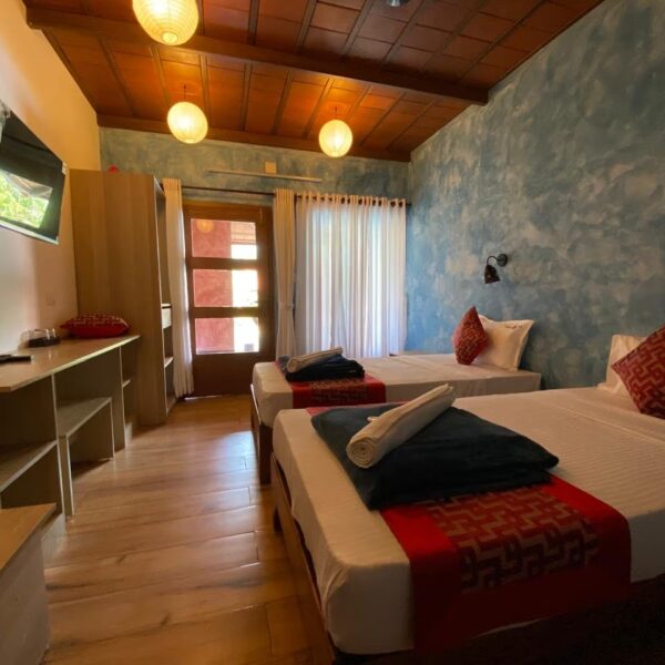Enjoy a peaceful and refreshing stay in our Pool-Facing Room, thoughtfully designed to provide both comfort and convenience during your beachside getaway. Overlooking the sparkling swimming pool, the room offers a calm and pleasant atmosphere throughout the day. It features a comfortable bedding setup, air-conditioning, high-speed WiFi, and an attached private bathroom with essential amenities, ensuring a hassle-free experience. The modern interiors are clean, welcoming, and ideal for guests looking to unwind after exploring the nearby Cherai Beach and surrounding attractions.